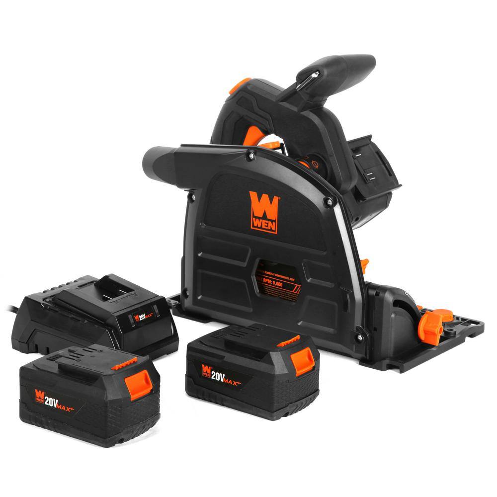 WEN 20691 20-Volt Max 6.5 in. Cordless Brushless Plunge Cut Variable Speed Track Saw with Two 4.0 Ah Batteries and Charger