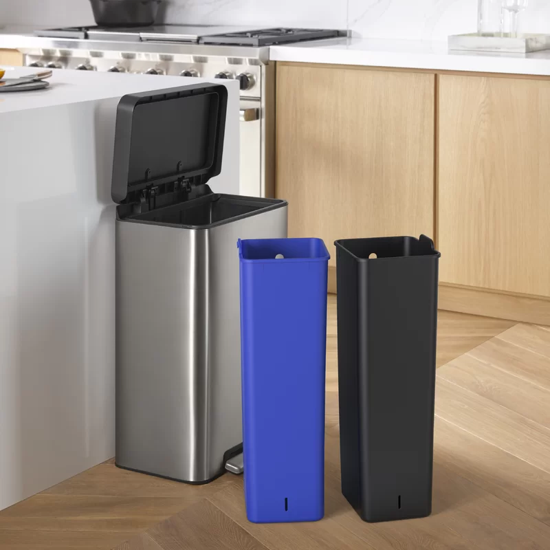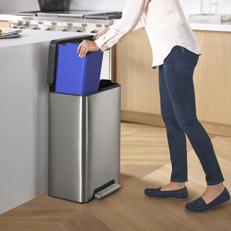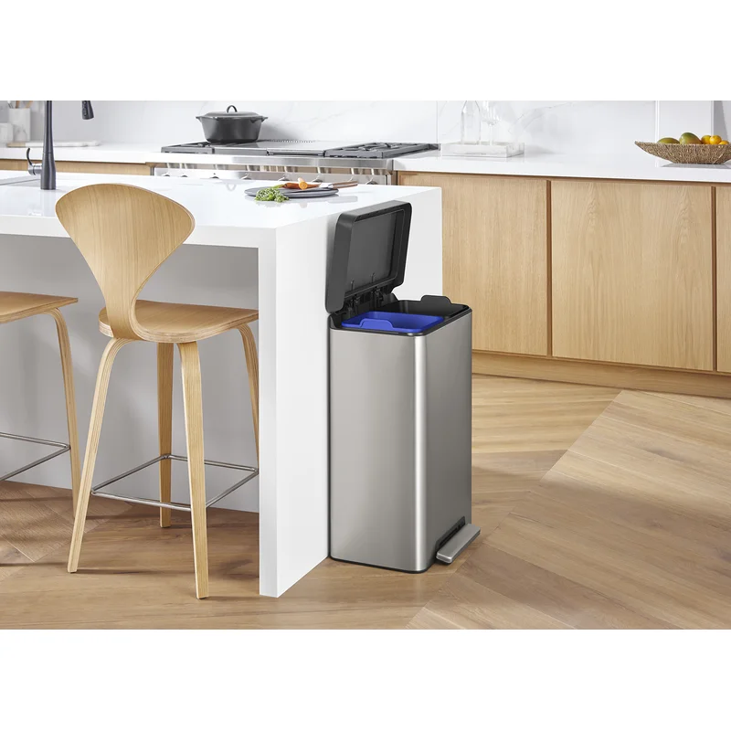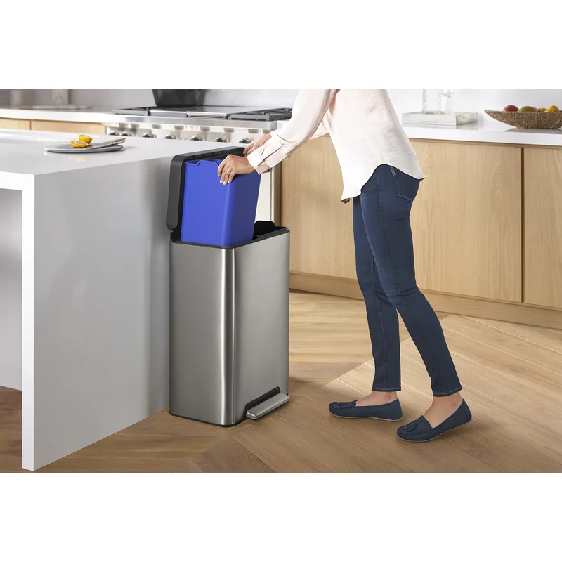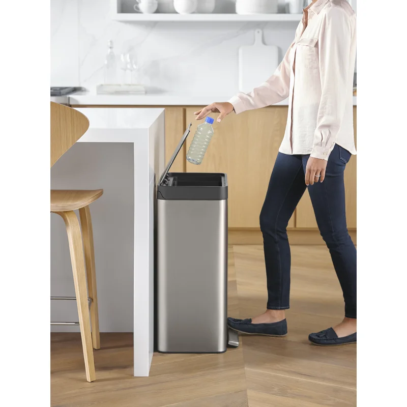 Kohler 20956-ST 11 Gallon Hands-Free Dual Compartment Recycling Kitchen Step, Trash Can with Foot Pedal, Quiet-Close Lid, Stainless Steel