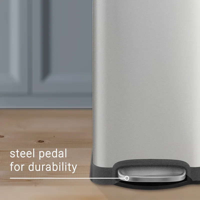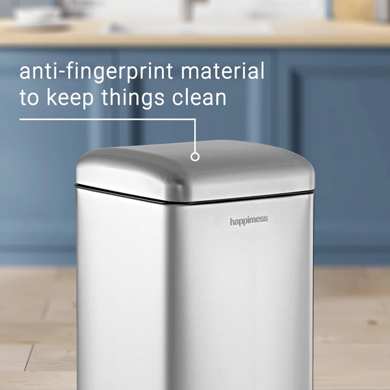 happimess HPM1007D Betty Retro 8-Gallon Step-Open Trash Can, Modern, Minimalistic, Soft Close, No Slamming, Kitchen, Laundry Room, Office, 8 Gallons, Chrome