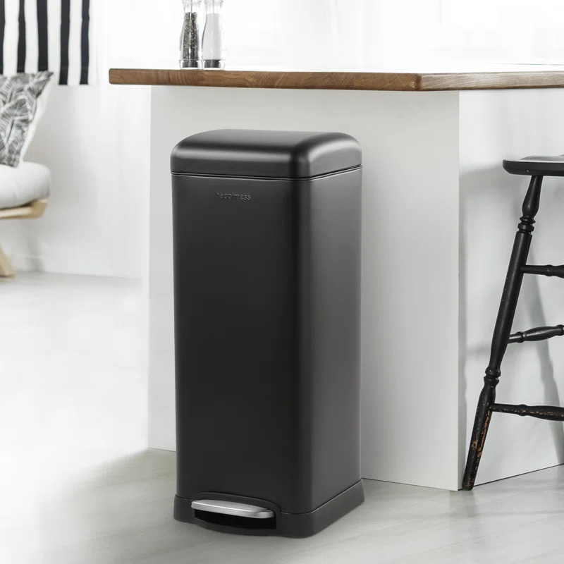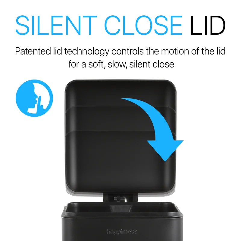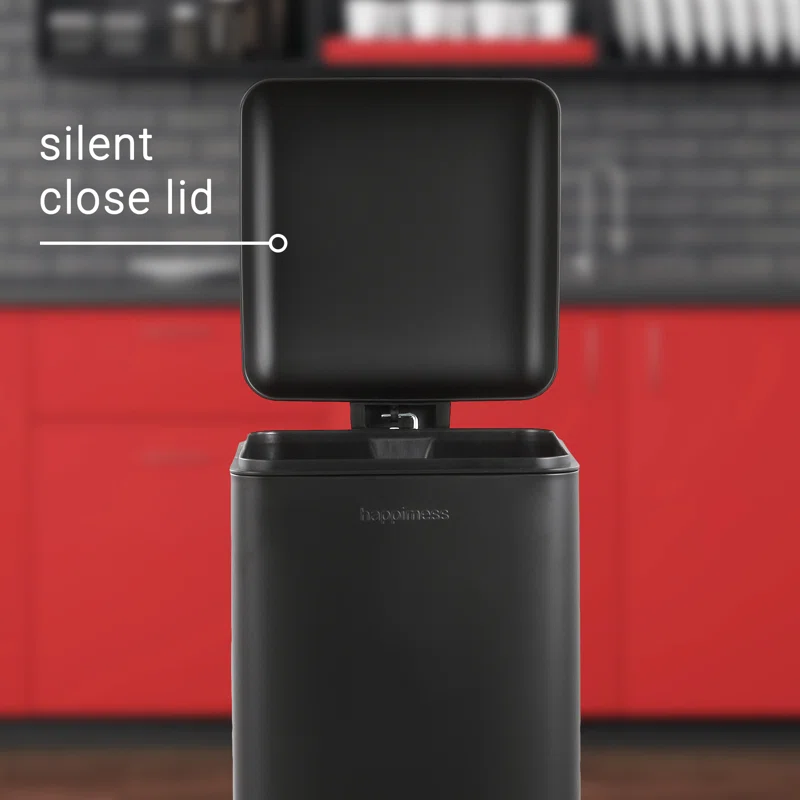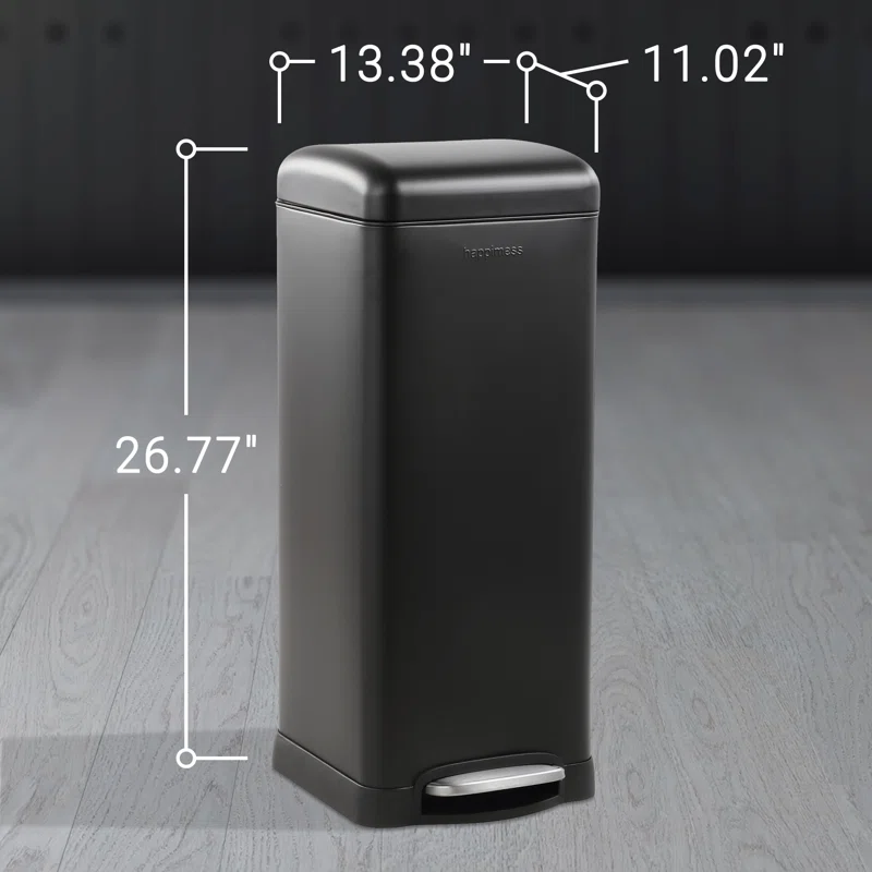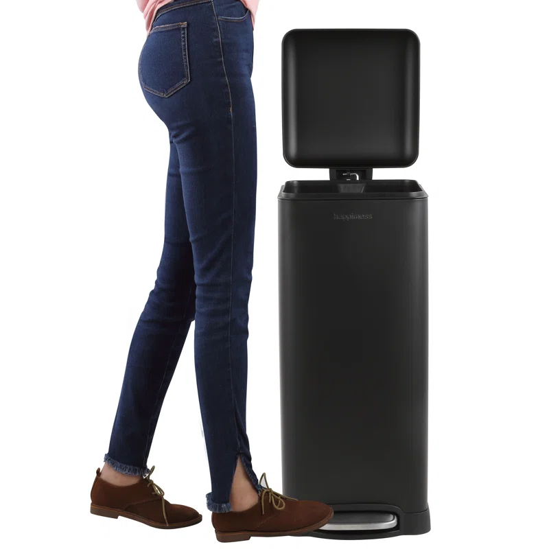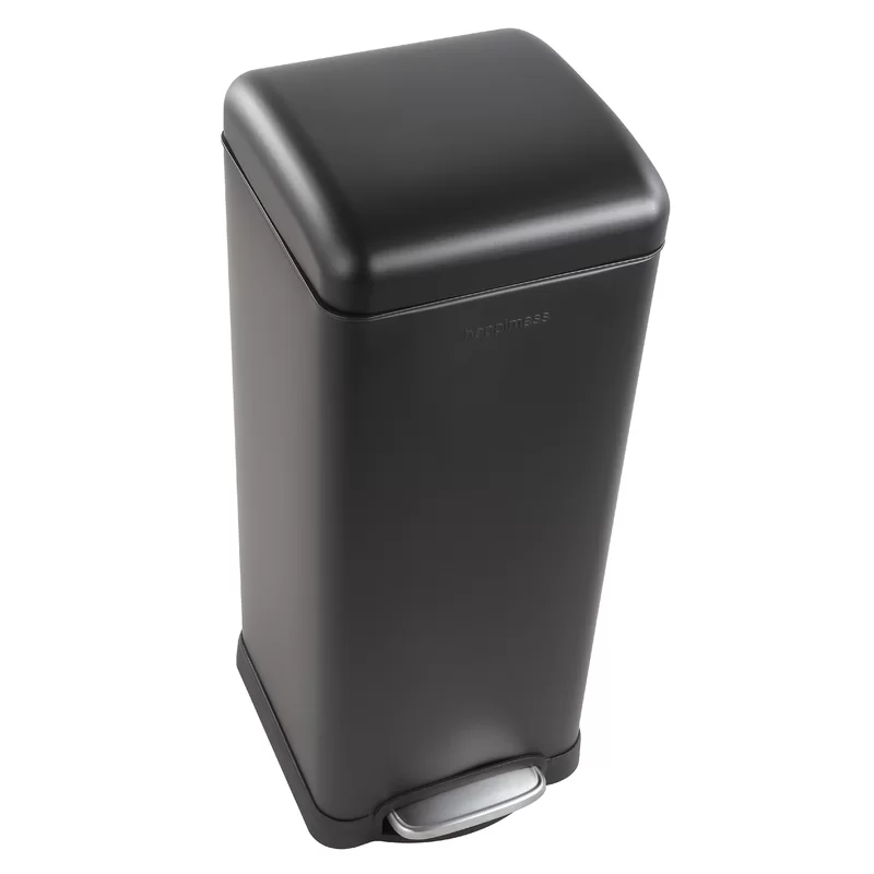happimess HPM1007B Open Soft Close Step Trash Can, 7.9 Gallon, Black