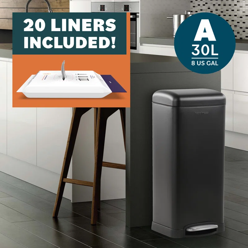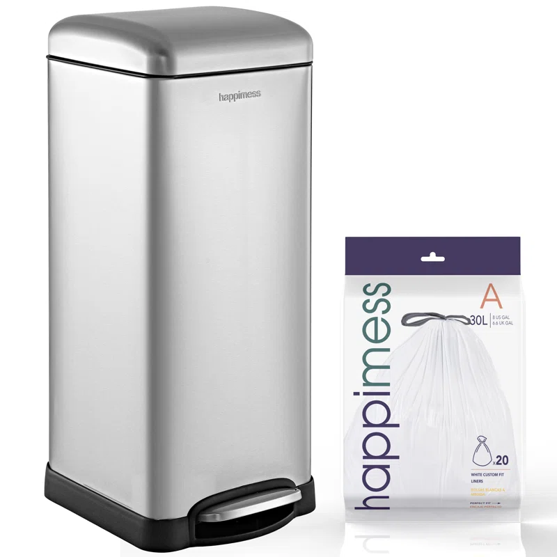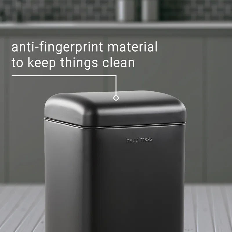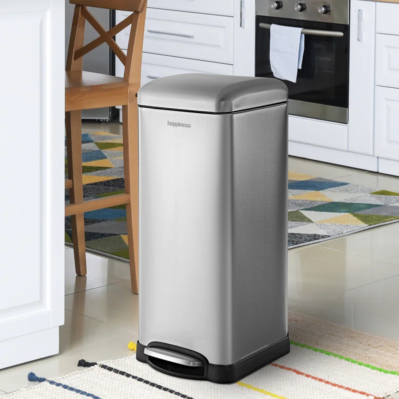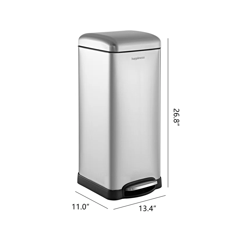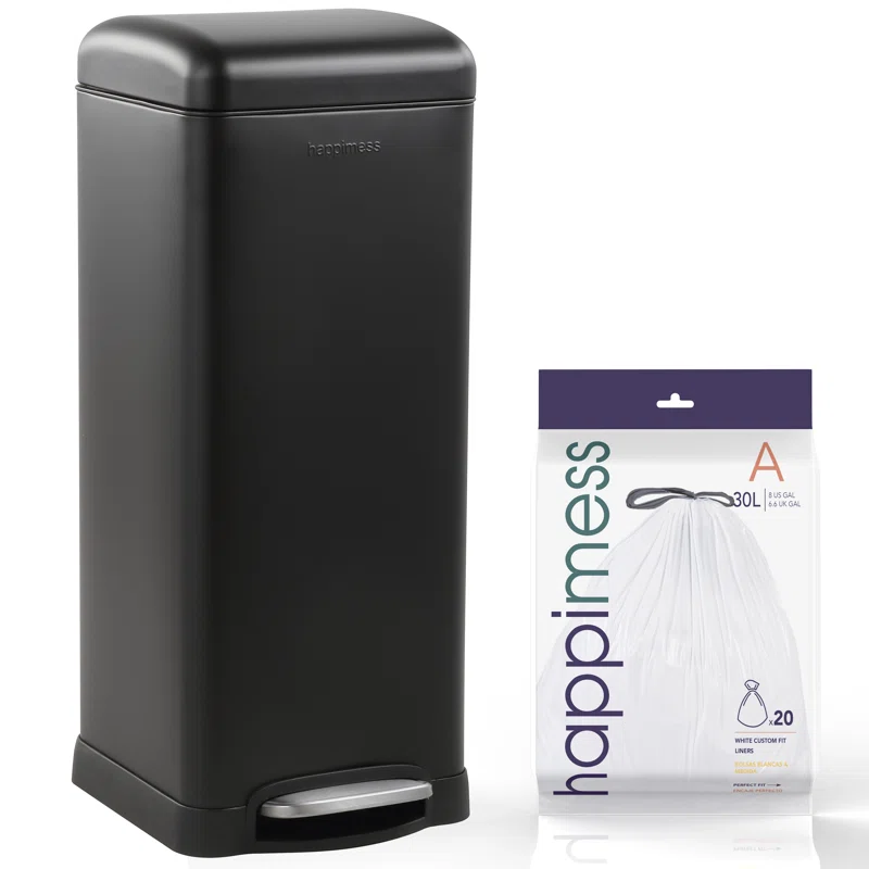 happimess HPM1007B Open Soft Close Step Trash Can, 7.9 Gallon, Black