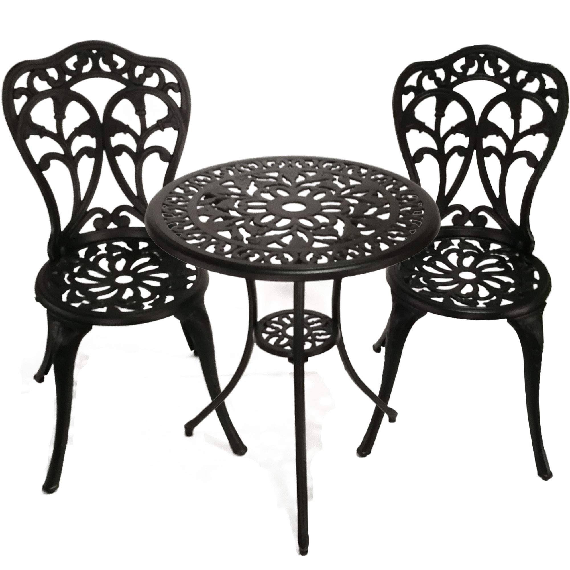 InnFinest 3-Piece Patio Bistro Dining Set - Cast Aluminum Table and Chairs - Outdoor Furniture Tulip Design - with Umbrella Hole