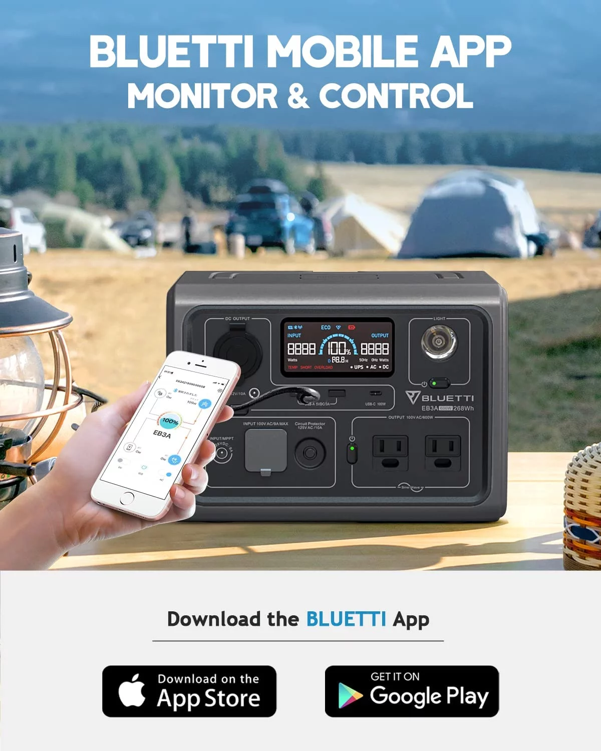 Bluetti EB3A Portable Power Station.268Wh Solar Generator .600W AC Output.Recharge from 0-80% in 30 Min. for Outdoor Camping. Home Use.Emergency