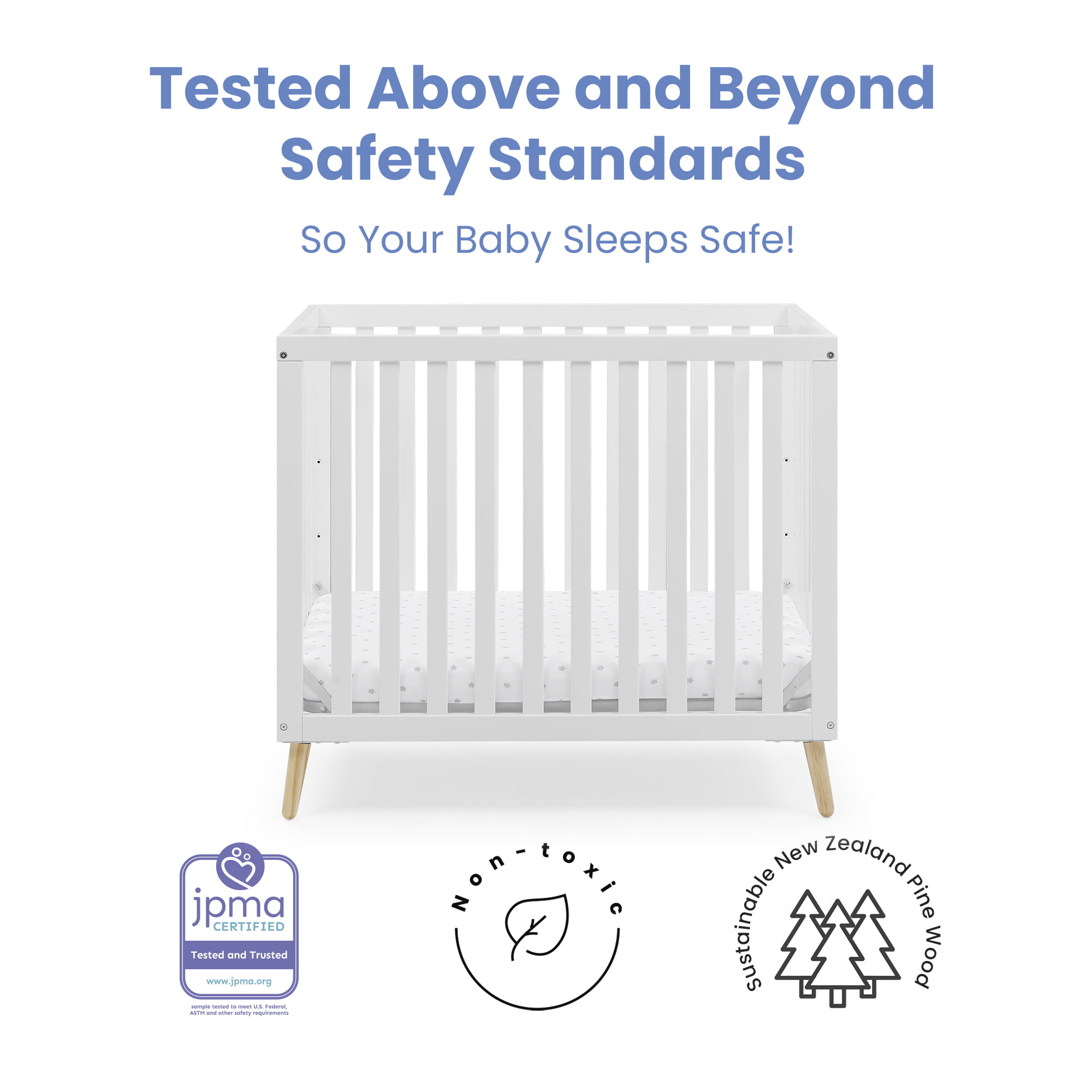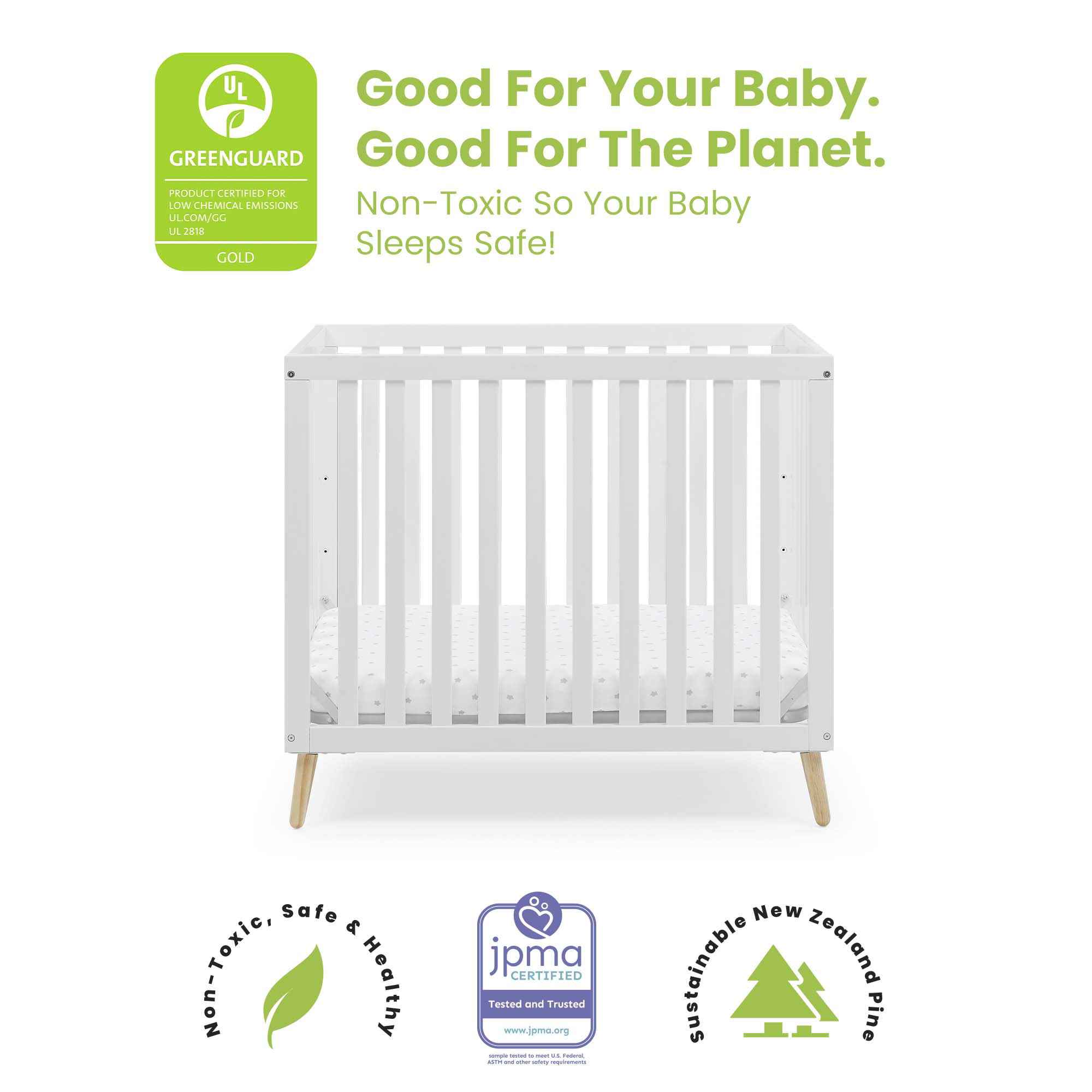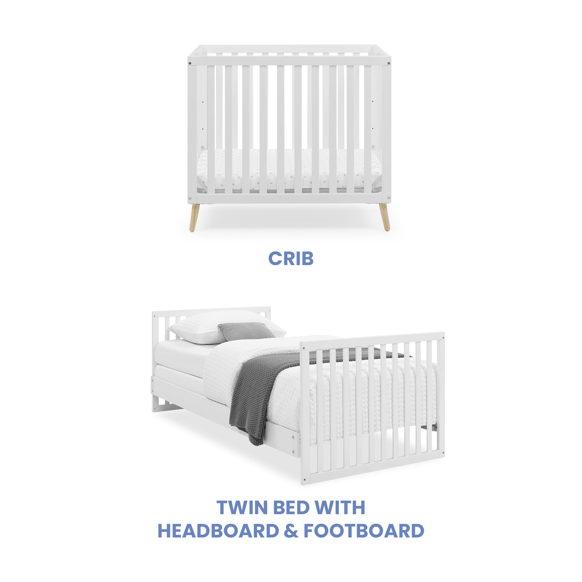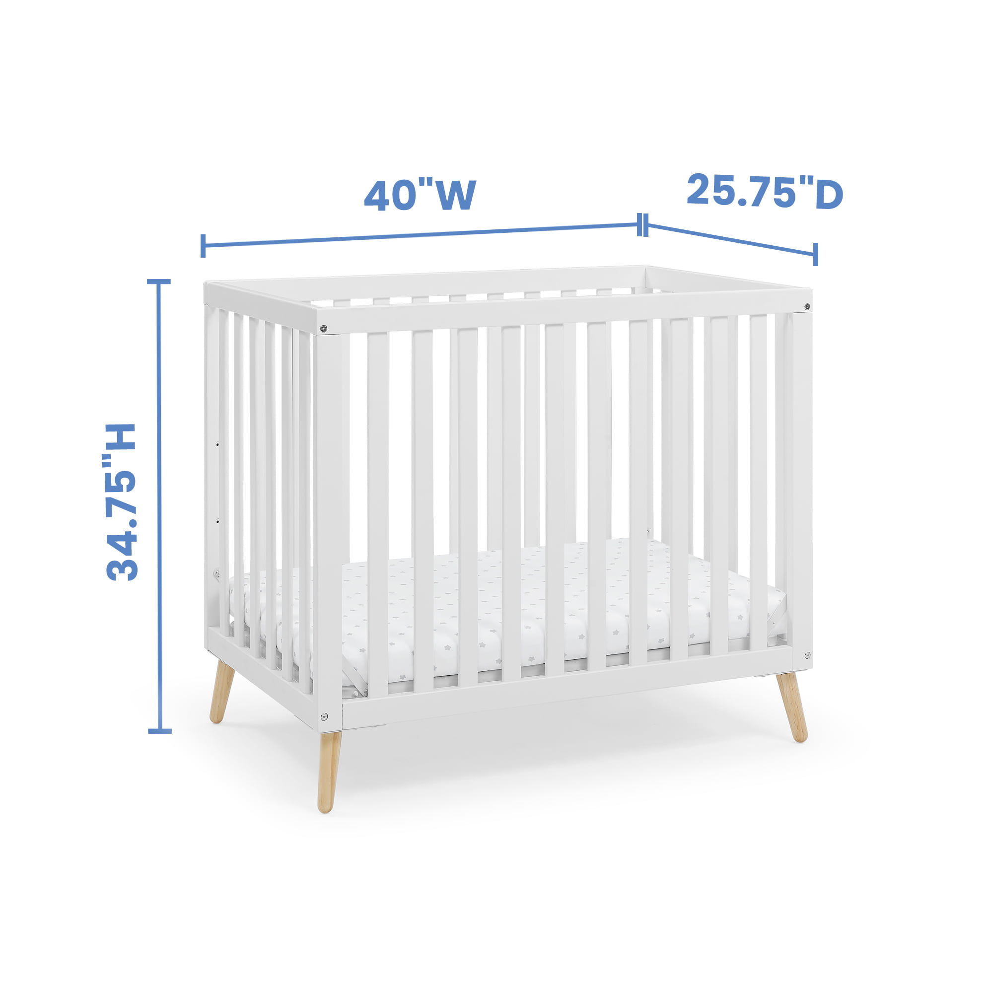 Delta Children Essex Convertible Mini Baby Crib with 2.75-Inch Mattress, Bianca White/Natural