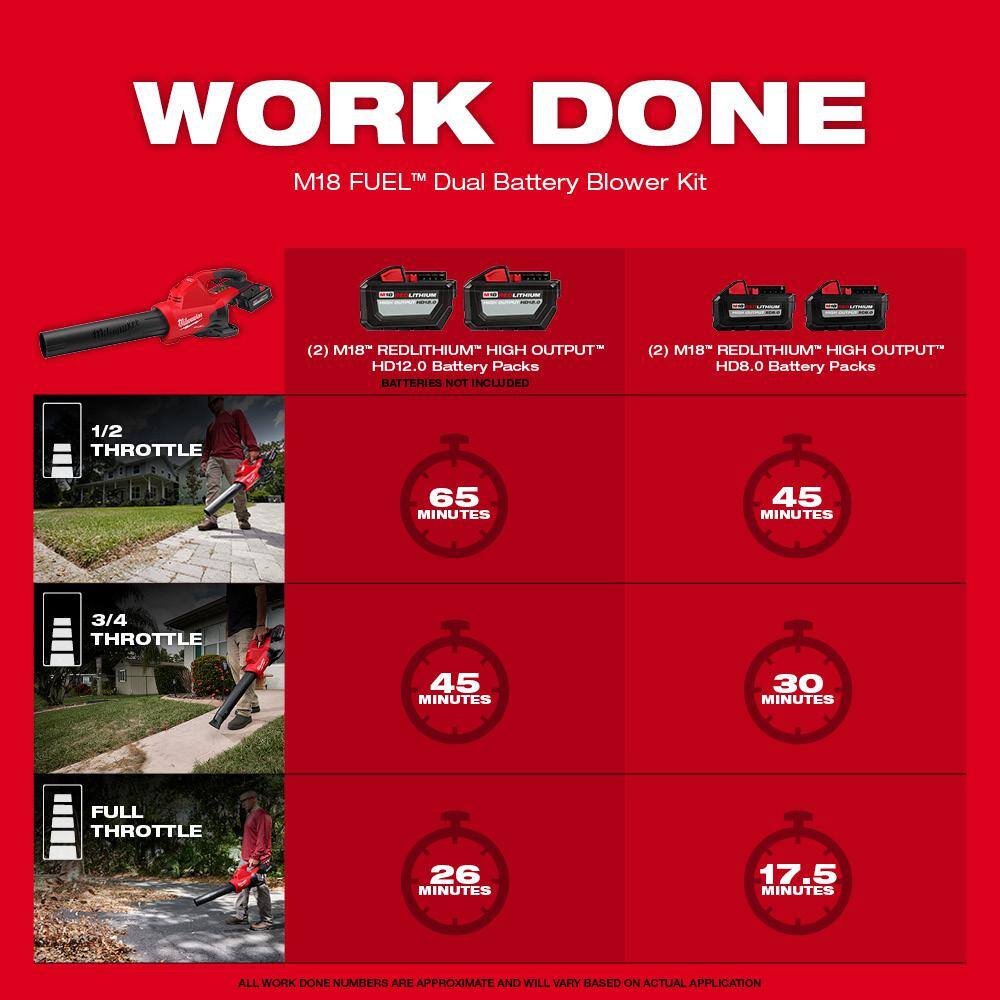 Milwaukee 2824-20-48-11-1880-48-11-1862 M18 FUEL Dual Battery 145 MPH 600 CFM 18-Volt Lithium-Ion Brushless Cordless Handheld Blower w/(3) Batteries