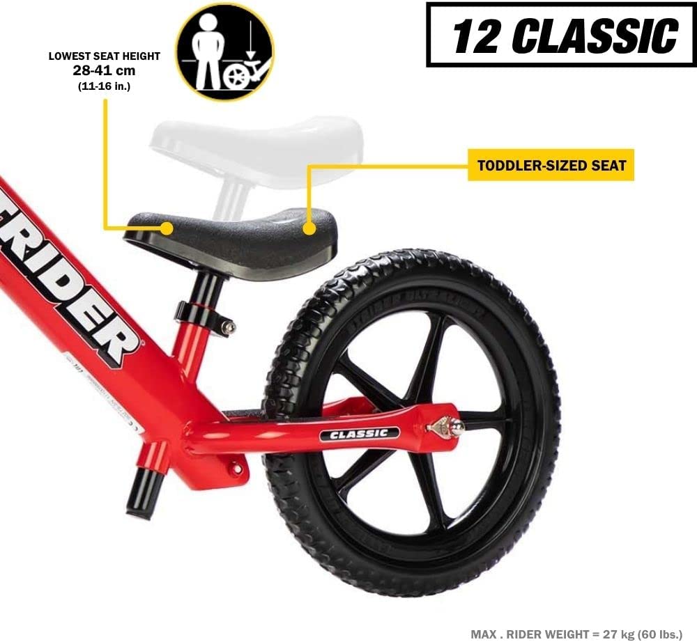 Strider – 12 Sport Kids Balance Bike, No Pedal Training Bicycle, Lightweight Frame, Flat-Free Tires, For Toddlers and Children Ages 18 Months to 5 Years Old (Yellow)