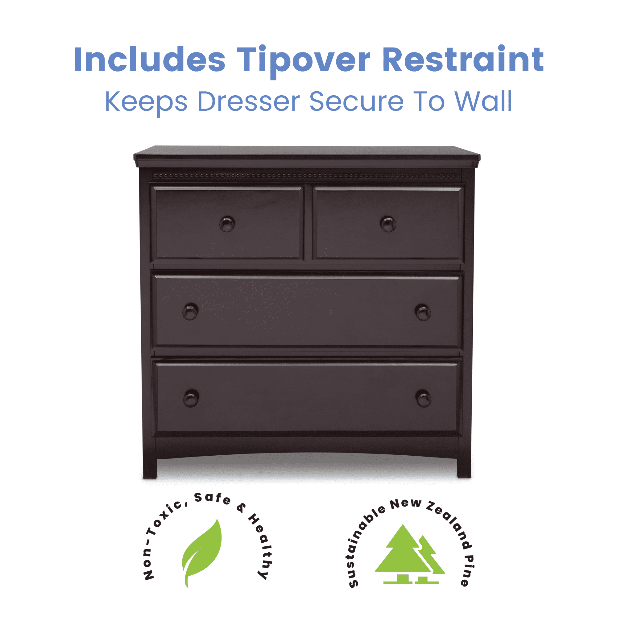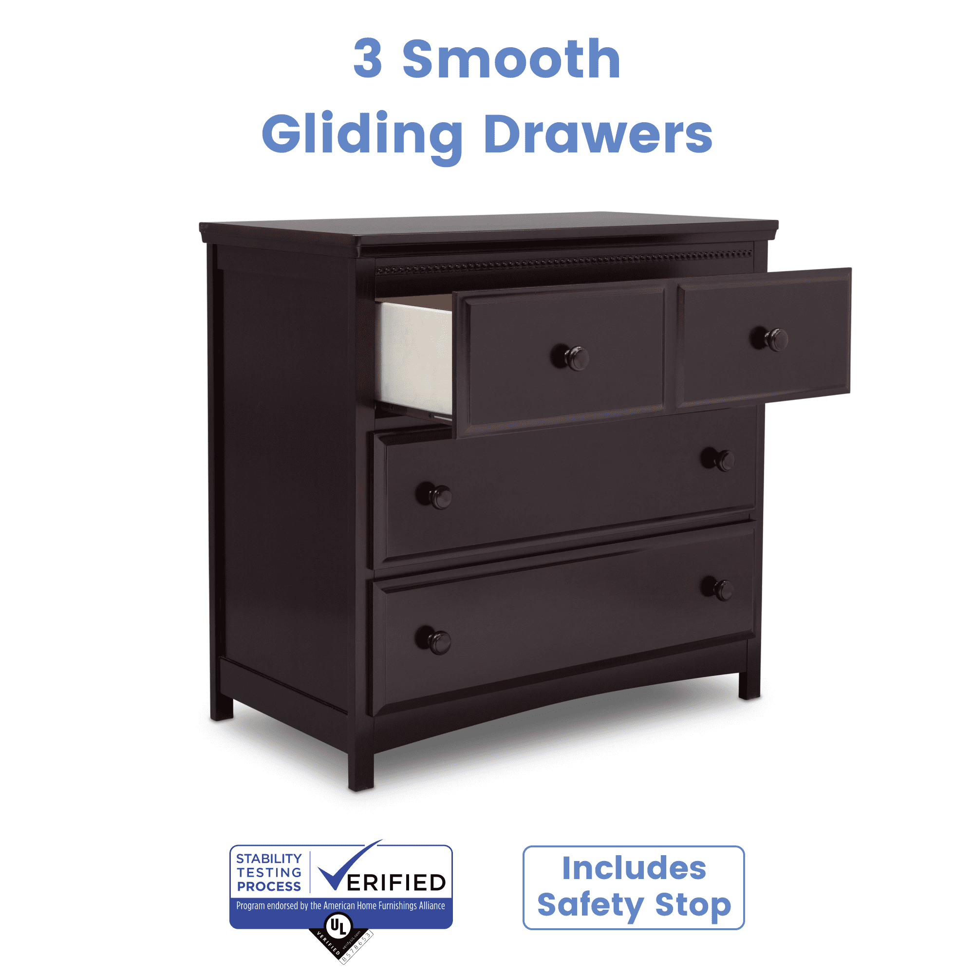 Delta Children Waverly 3 Drawer Dresser with Changing Top, Dark Chocolate