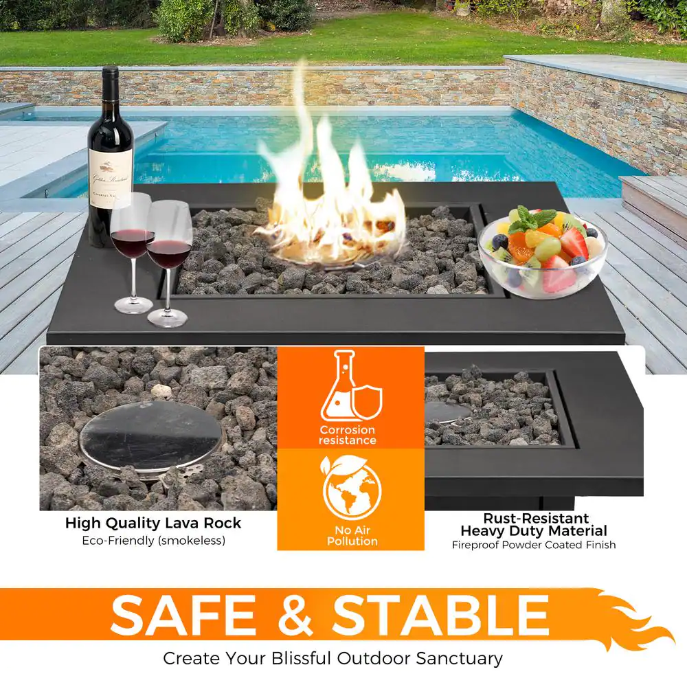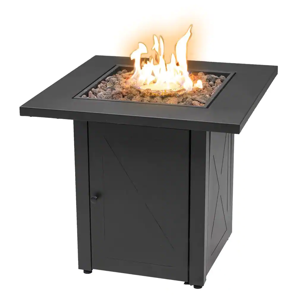 LAUREL CANYON GHFIRE04 48000 BTU 28 in. x 25 in. Square Outdoor Propane Gas Fire Pit Table Quick Ignition Black Table Top Iron