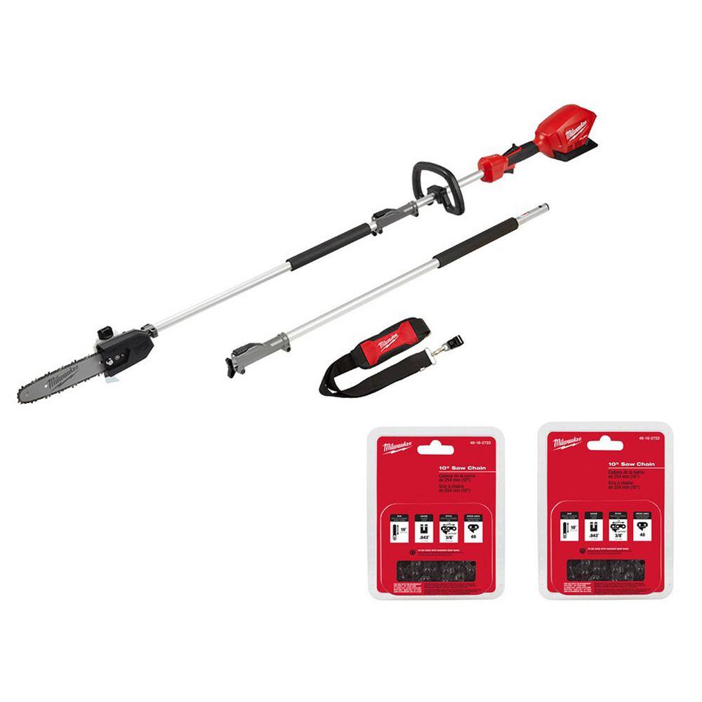 Milwaukee 2825-20PS-49-16-2723-49-16-2723 M18 FUEL 10 in. 18V Lithium-Ion Brushless Electric Cordless Pole Saw w/ Attachment Capability with Two 10 in. Saw Chain