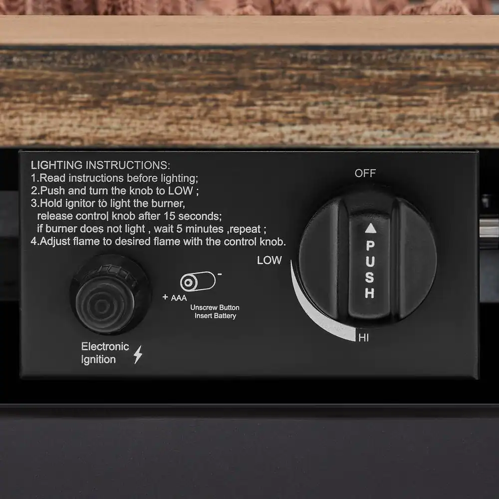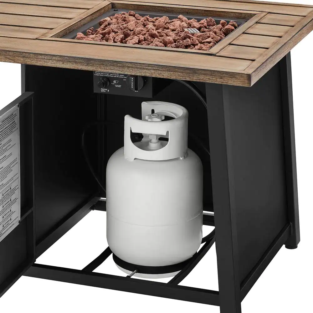Hampton Bay GL-1850-FP Fordham 46 in. W x 26 in. H Rectangular Powder Coated Steel LP Fire Pit Coffee Table in Faux Wood with Lava Rocks