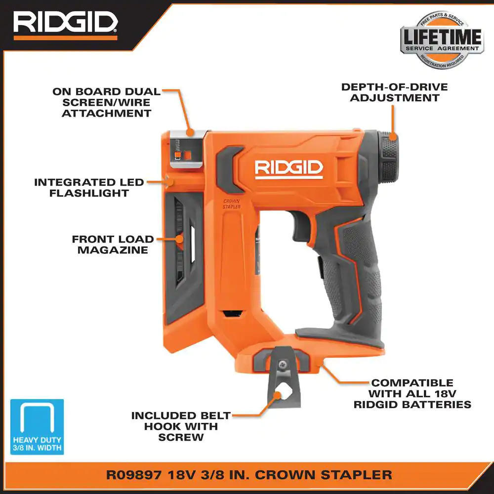 RIDGID R09897B 18V Cordless 3/8 in. Crown Stapler (Tool Only)