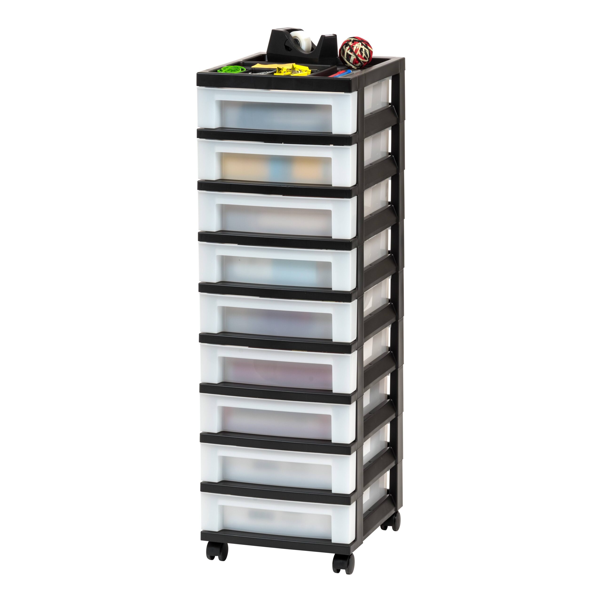 IRIS Black 9-Drawer Storage Cart with Organizer Top (Black/Pearl)