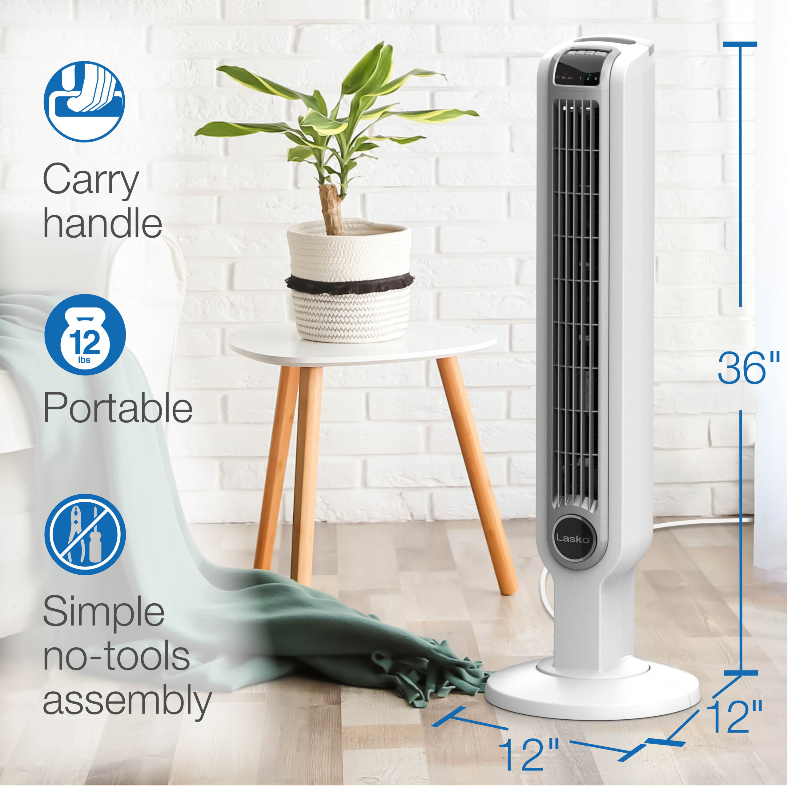 Lasko 36′′ Tower Fan with Remote Control in White