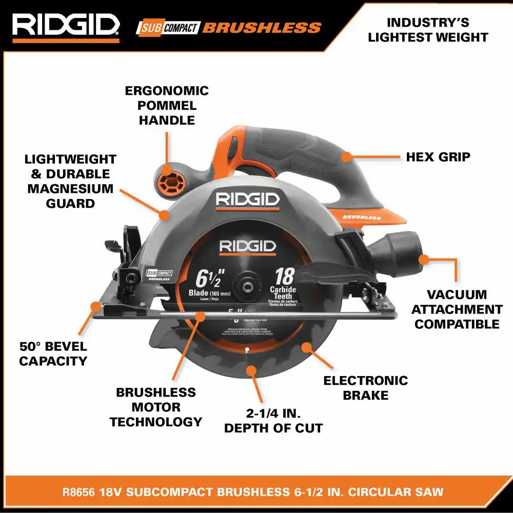 RIDGID R8656B 18V SubCompact Brushless Cordless 6 1/2 in. Circular Saw (Tool Only)