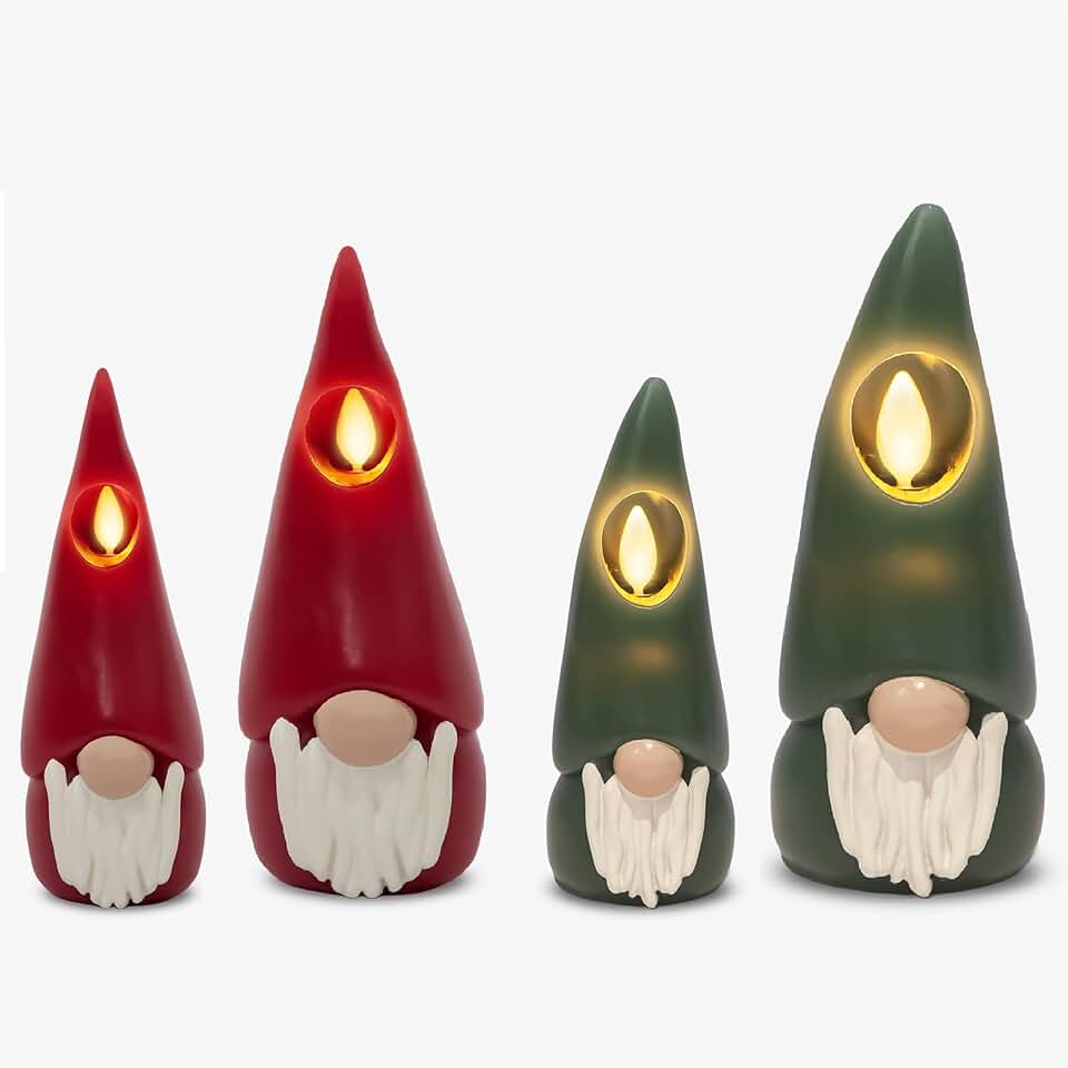 Flameless Candle Gnome Figurals Set Winter Christmas Decoration