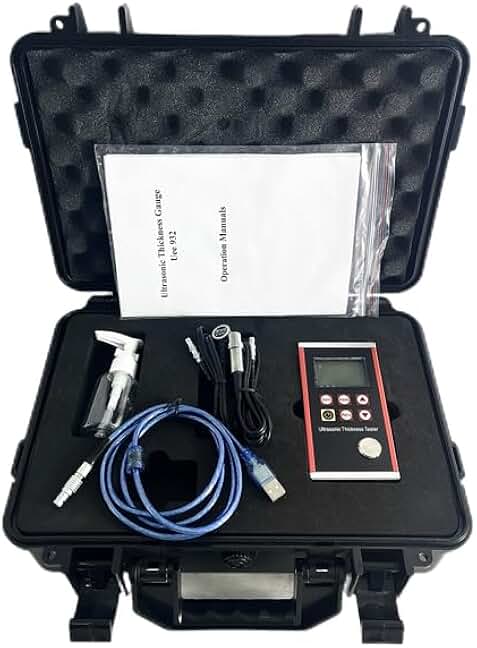 Digital Ultrasonic Thickness Gauge Tester Meter Metal shell 0.75 to 350mm Two display units mm and inch Integrated with 4mm calibration block 2 probes Standard probe and Angle probe