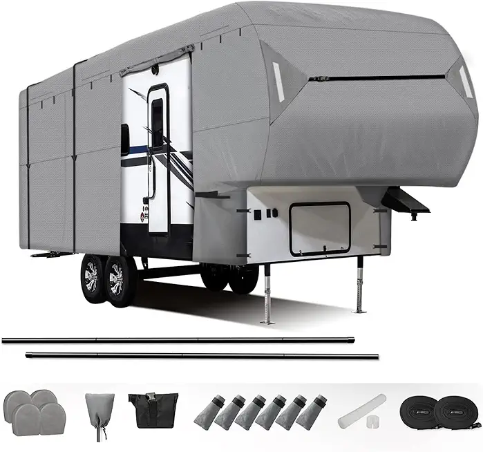 Leader Accessories 5th Wheel Cover RV Cover (33'-37', Grey/Easy Setup W Tire Covers)