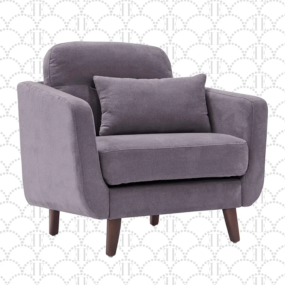 Elle Decor Chloe Upholstered Living Room Armchair, Tufted Fabric Couch, Mid-Century Modern Tufted Chair with Padded Back Cushion, Blue Gray