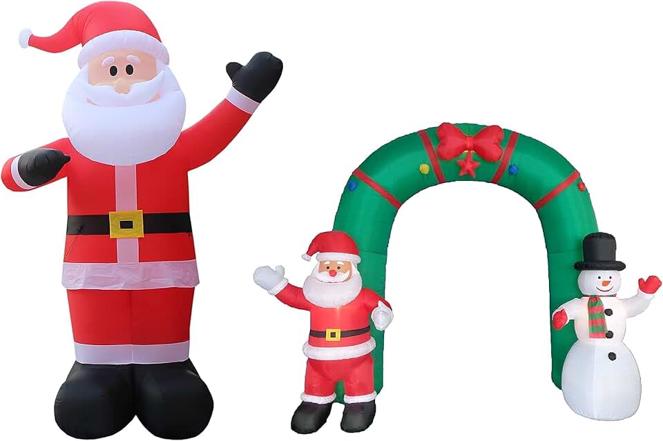 Two Christmas Party Decorations Bundle, Includes 14 Foot Tall Giant Inflatable Santa Claus, and 10 Foot Tall Inflatable Archway Arch with Santa Claus and Snowman Blowup with Lights