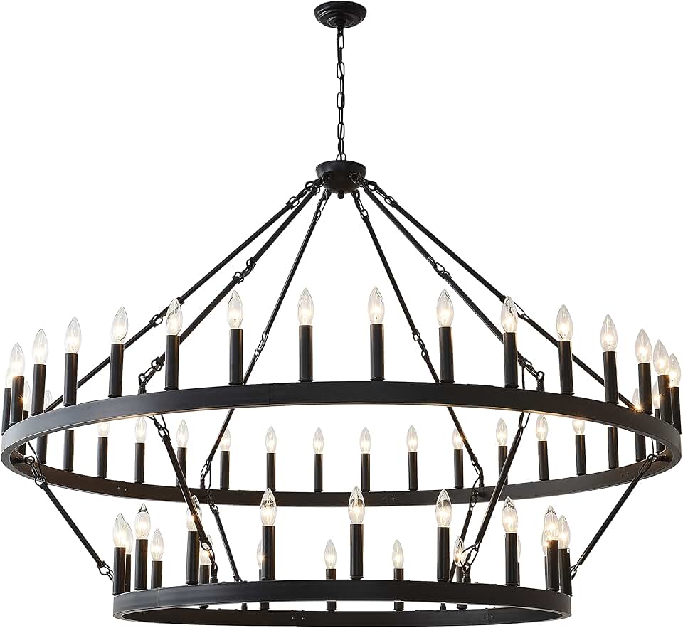 60 Inch Large Black Wagon Wheel Chandelier,2 Tier 54-Lights Farmhouse Industrial Country Style Round Pendant Light Fixture for Dining Room Kitche