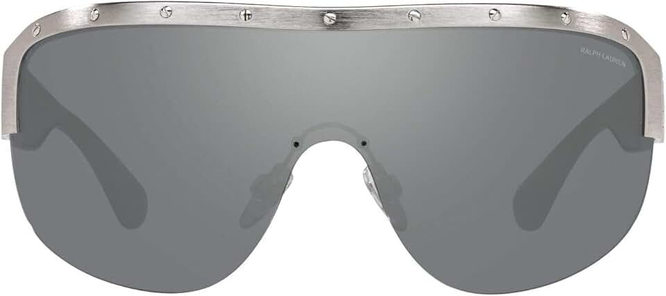 Ralph by Ralph Lauren Women's RL7070 Aviator Sunglasses, Shiny Silver/Grey Mirror, 42 mm