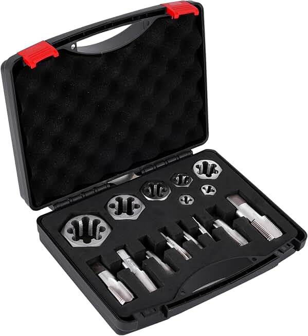 NPT Pipe Tap and Die Set, Hex Die Set 1/16", 1/8", 1/4", 3/8", 1/2", 3/4" and 1", 15pcs High Speed Steel Taps Carbon Steel Dies