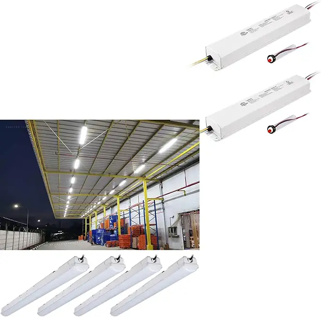 LEONLITE Shop Lighting Bundle Emergency Driver, 4-Pack 70W 4FT LED Vapor Tight Light 0-10V Dimmable, IP65, UL Listed, 5000K & 2-Pack 8.5W LED Emergency Driver for Commercial Fixture 8-72W, UL Listed