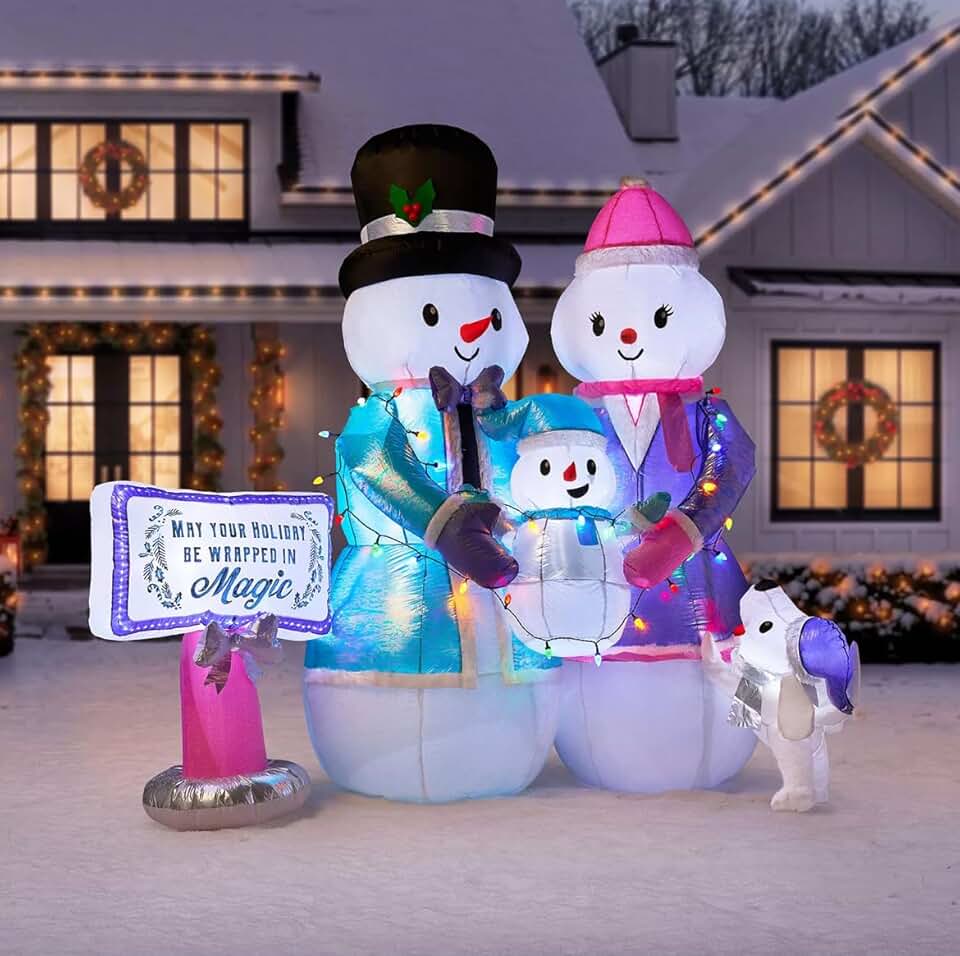 8' Pre-Lit Inflatable Snowman Family Christmas Decoration (sc)