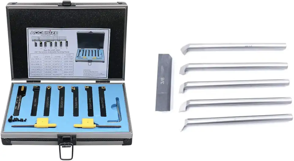 Accusize Industrial Tools 3/8 inch Carbide Turning & H.S.S. Threading Tools Bundle