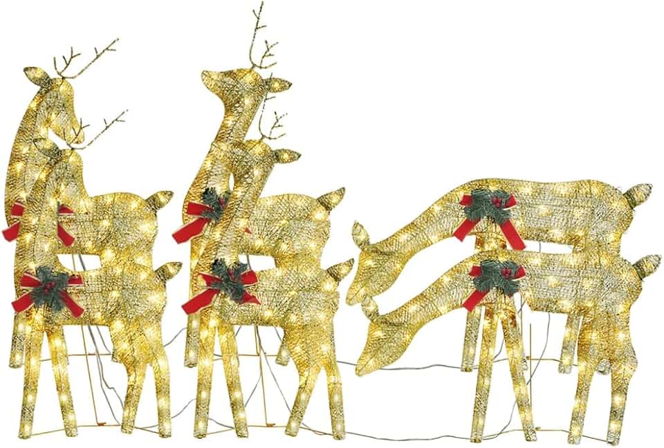 Home Garden Asomie Decor Seasonal Holiday Decorations Christmas Lighting Christmas Reindeers 6 pcs Gold Warm White Mesh US Stock Fast Shipment Gold