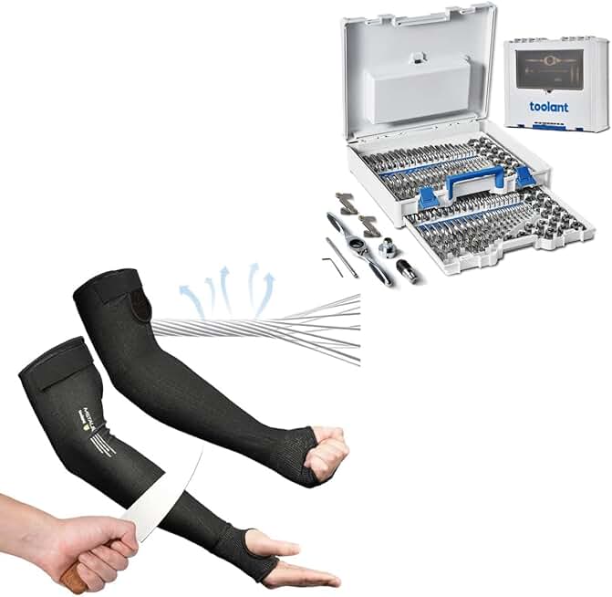 toolant 127pcs SAE/Metric Tap and Die Set & Ultra-Comfort Cut Resistant Sleeves