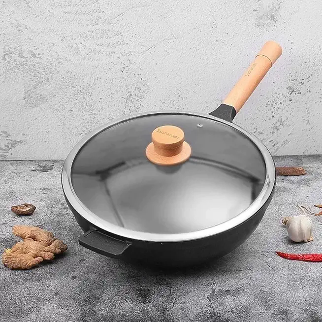 DFHBFG Non-Stick Pan Aluminum Alloy Wooden Handle 30/32cm Wok Induction Cooker Universal Induction Cooker Universal Saucepan(32cm)