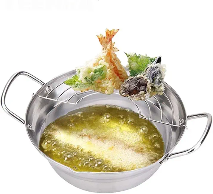 Silver Fryer Pot Japanese Potable Frying Pots With Drainer Basket Household Cookware Kitchen Utensils