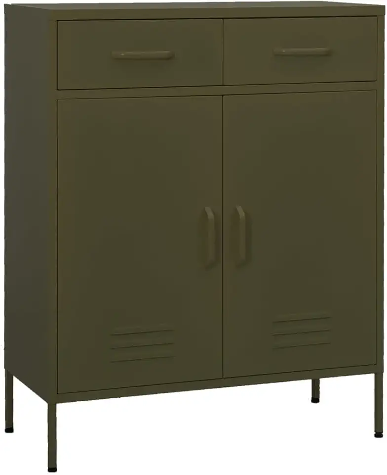 vidaXL Steel Storage Cabinet - Olive Green, Two Drawers & Adjustable Shelf, 31.5"x13.8"x40"