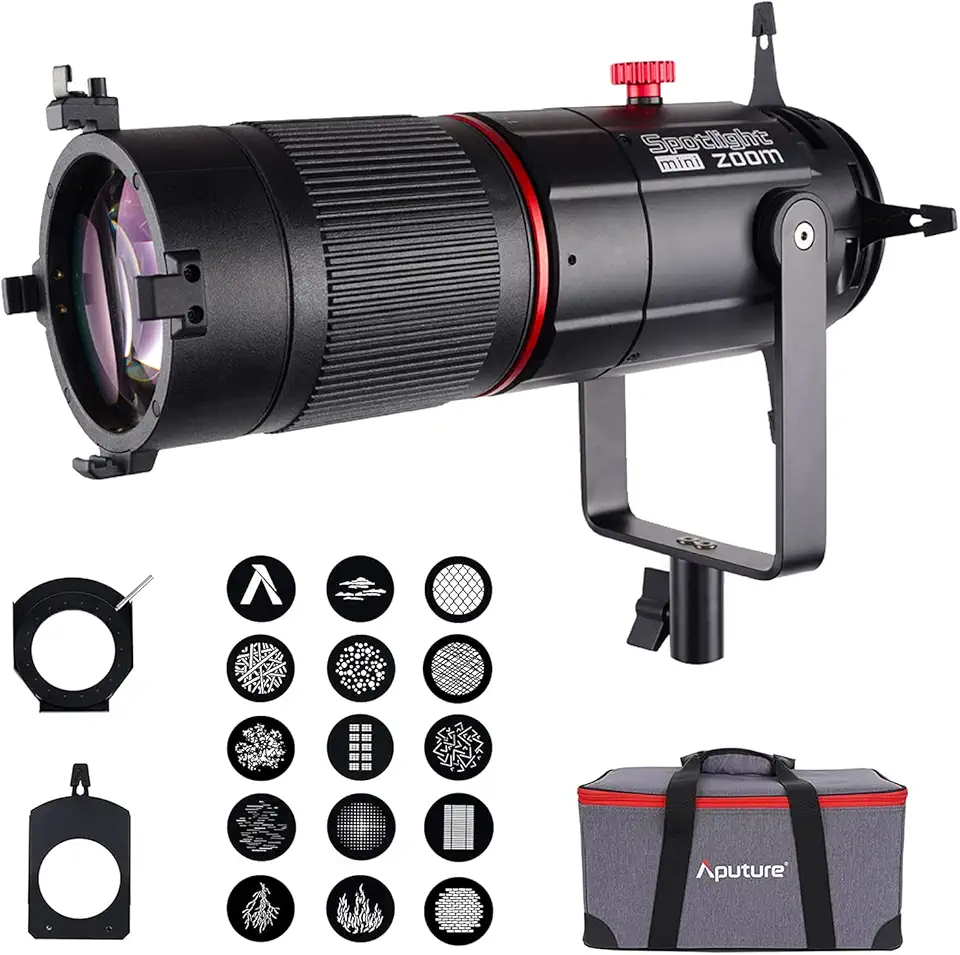 Aputure Spotlight Mini Zoom for The LS 60d and LS 60x Focusing LEDs 15°~30° 2X Zoom Adjustable Focus Projection Lens,with 15 M-Size Gobos,GOBO Holder,Gel Holder