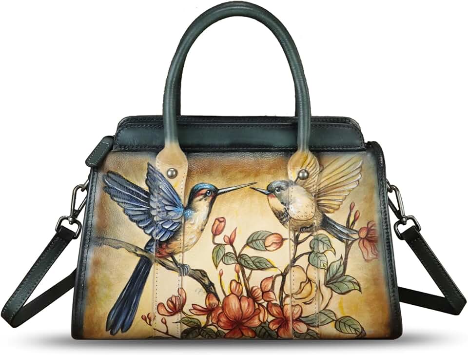 Genuine Leather Satchel for Women Hand Painted Handbag Purse Top Handle Bags Handmade Purse Crossbody Tote Bag