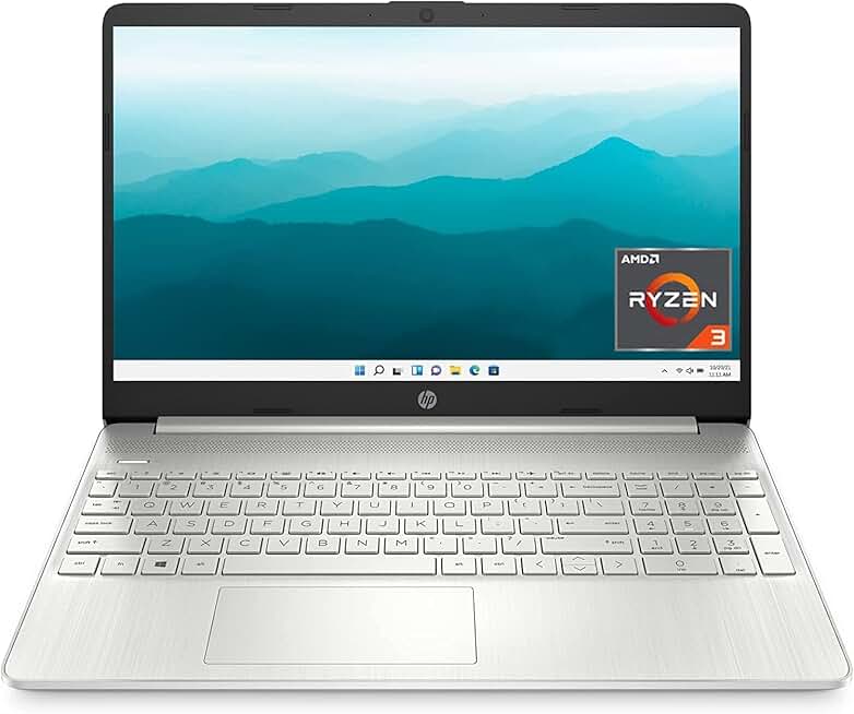 HP 15 Laptop, AMD Ryzen 3-5300U Processor, 8 GB RAM, 256 GB SSD Storage, 15.6-inch HD Micro-Edge Display, Windows 11 Home, Long-Lasting Battery, Fast Charge, 720p Webcam (15-ef2024nr), Natural silver