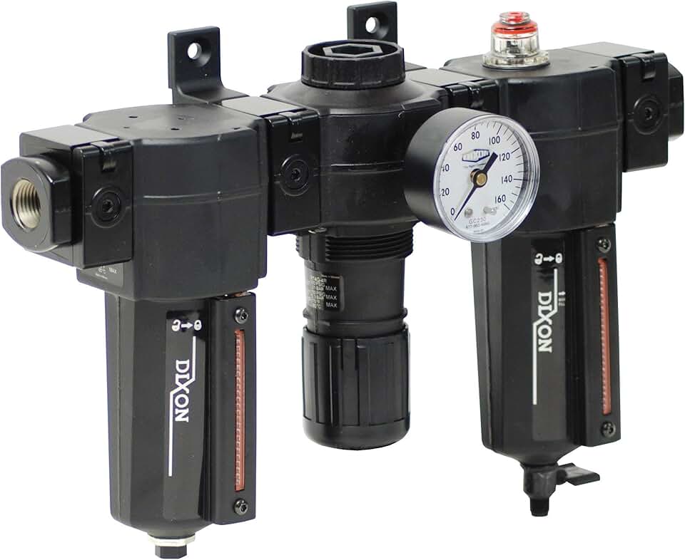 Dixon E74-6M-MB Norgren Series Manual Drain Combination Unit with Metal Bowl and Sight Glass, 1/2" Size, 140 SCFM, 3/4" Port Size, 5-150 PSI