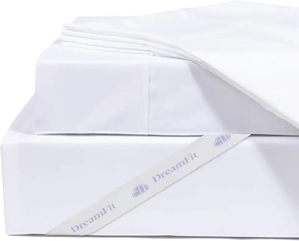 DreamFit DreamCool 100% Pima Cotton Sheets with Elastic Corner Straps 20 Inch Extra Deep Pocket Crafted in USA Hotel Style Luxury Sheets for Adjustable Bed Split Head California King Sheets Set White