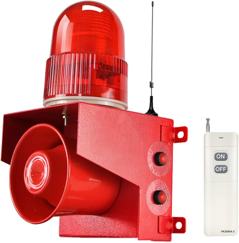 Security Siren Waterproof Outdoor Wireless Emergency Alarm with Strobe-120dB, 1.24mile Remote Control, 12 Tone for Industry Business School Shop Home Factory