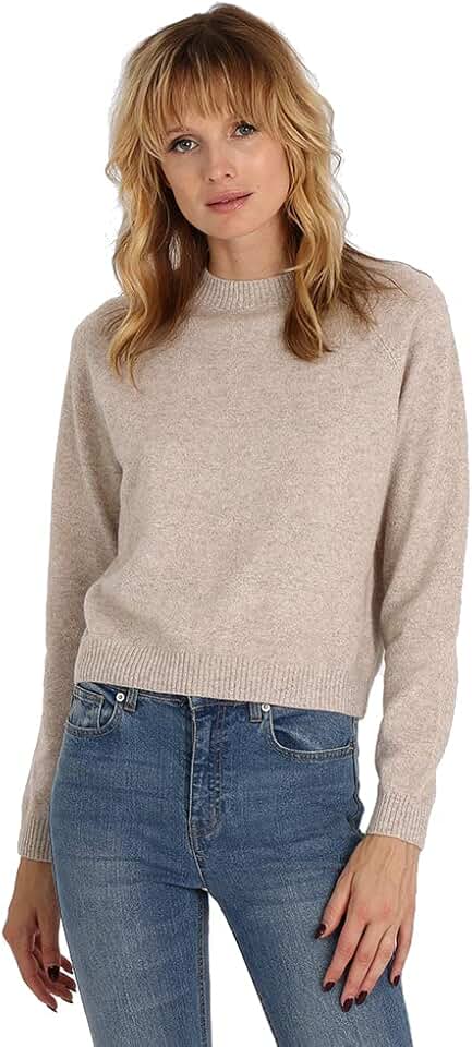 Minnie Rose Womens Long Sleeve Shrunken Crew Cashmere Sweater
