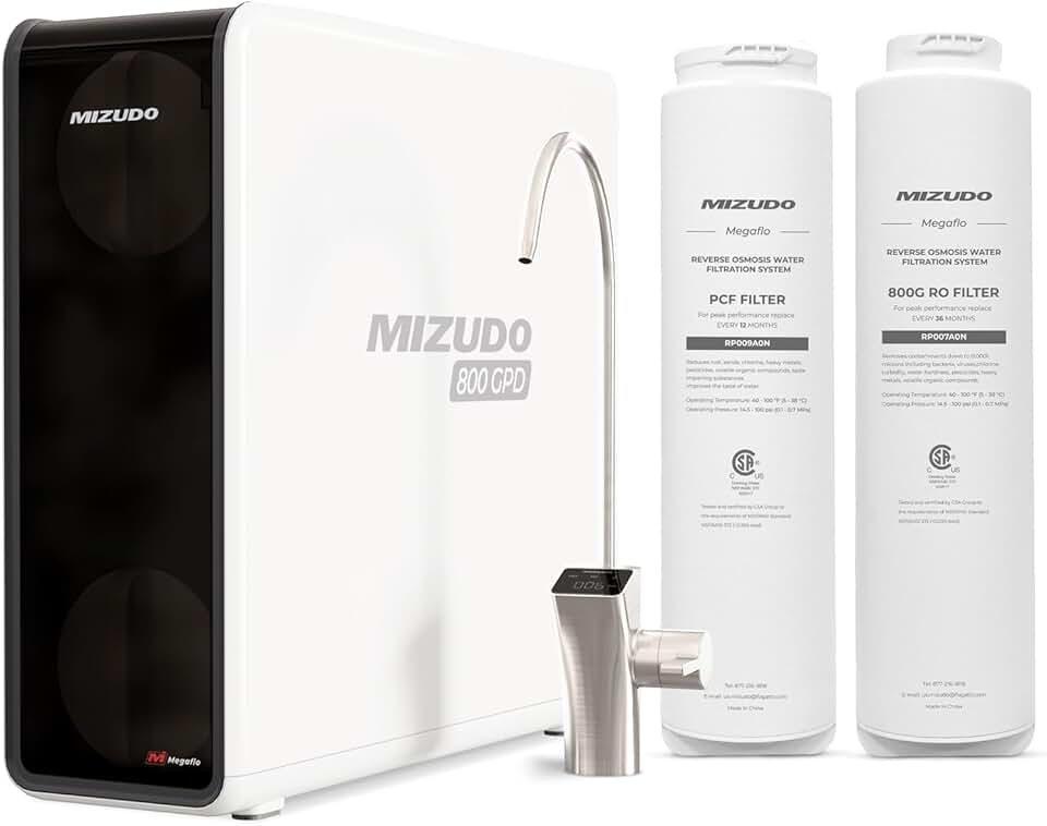Reverse Osmosis System, MIZUDO 9 Stage Tankless RO Water Filter System, RO Filter and PCF Filter Combo with 36-Month Lifespan, Megaflo 800 with 800GPD Under Sink Water Filtration System