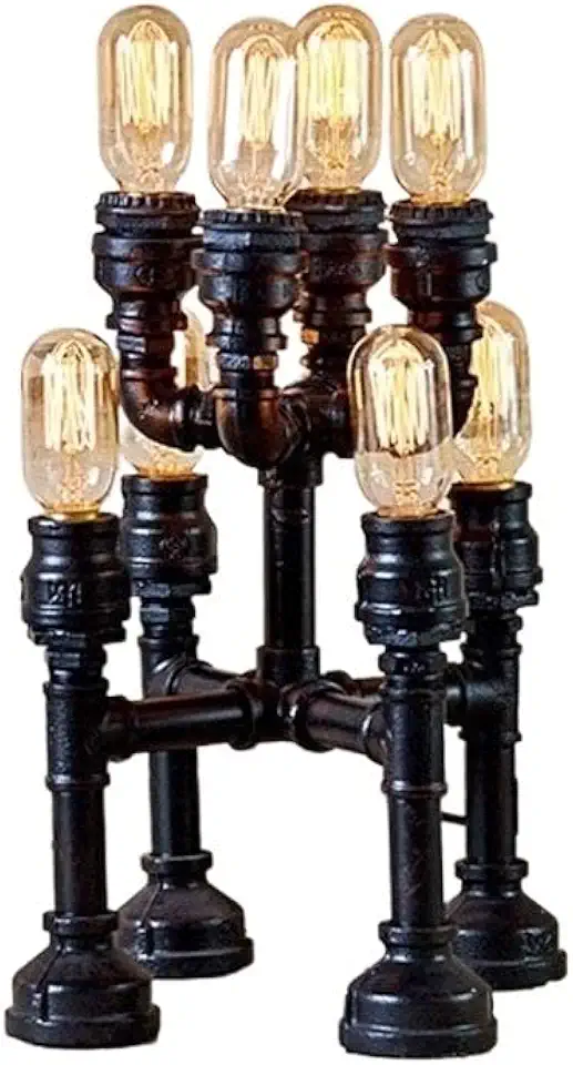 Modern 8-Heads Vintage Iron Industrial Water Pipes Table Lamp American Antique Metal Floor Lamp Desk Light for Bar Tavern Living Room Steampunk Party Lighting E27 Decor