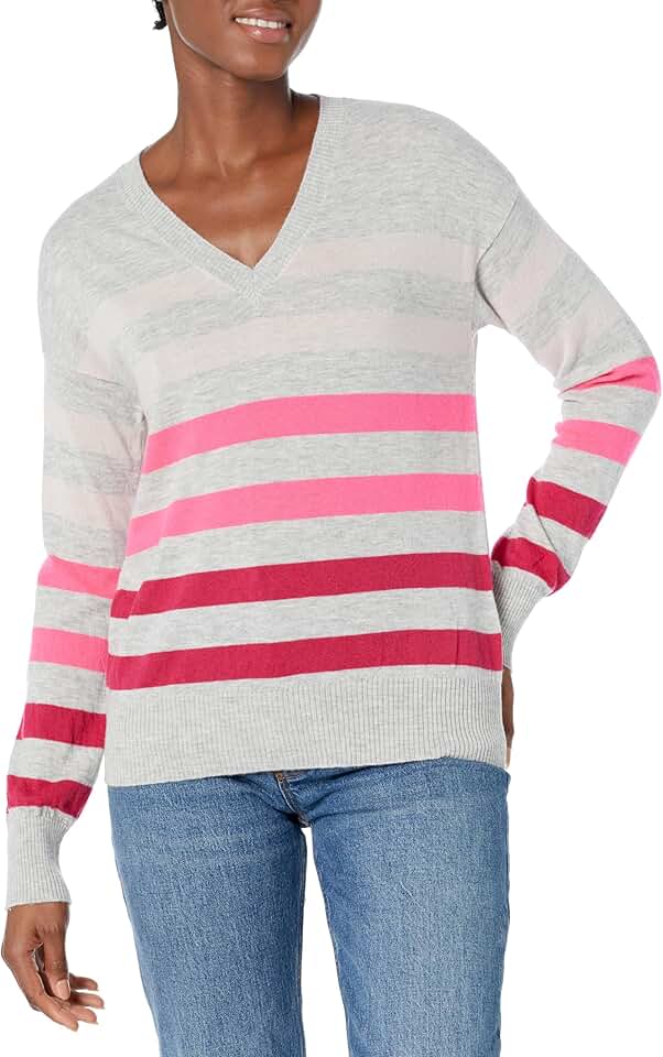 Majestic Filatures Women's Cashmere L/S Stripe V-Neck