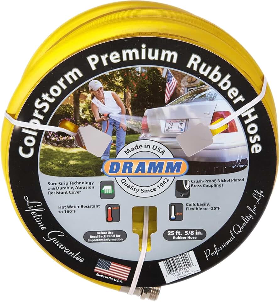 Dramm ColorStorm Premium Rubber Garden Hose, No Kink, Leak Proof Water Hose, Male Female Fittings, Made in USA, Hot & Cold Resistant, 518 Burst PSI, Yellow, 3/4"x75'