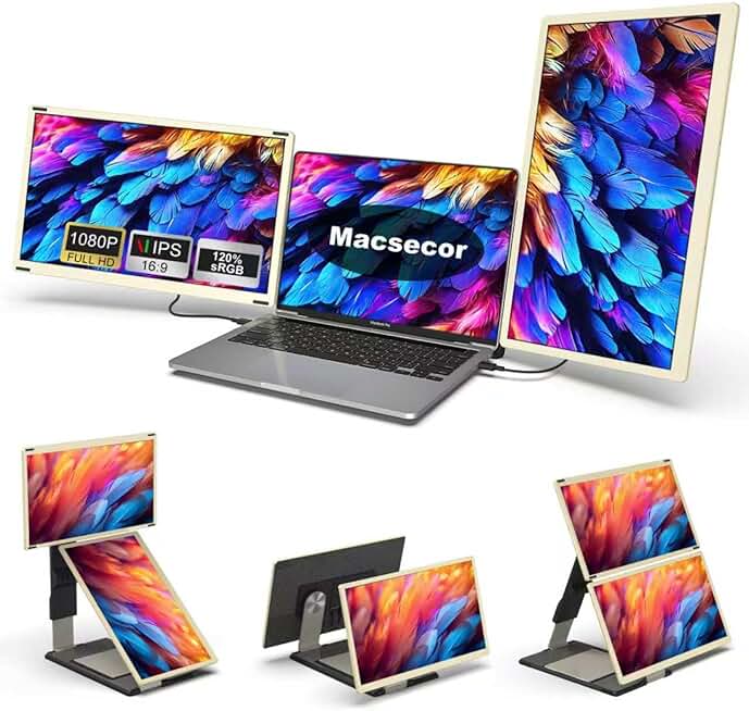 Triple Screen Extender 120hz 18.5" Portable FHD 1080P Monitor Folding Stacked Travel Monitor Automatic Rotation for Windows Mac OS Kickstand VESA Mountable(No Driver)