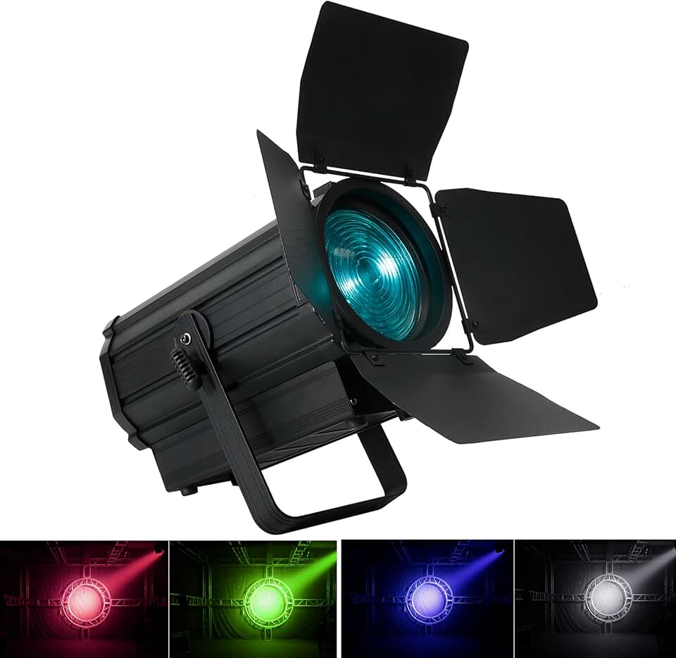 SHEHDS LED Par Lights COB 250W RGBW 4in1 Linear Zoom 15-55° Stage Wash Lights with Barn Door Fresnel Lens 3200k-5600k DMX512 Spotlights DJ Lights for Church Disco Ball Wedding Theater