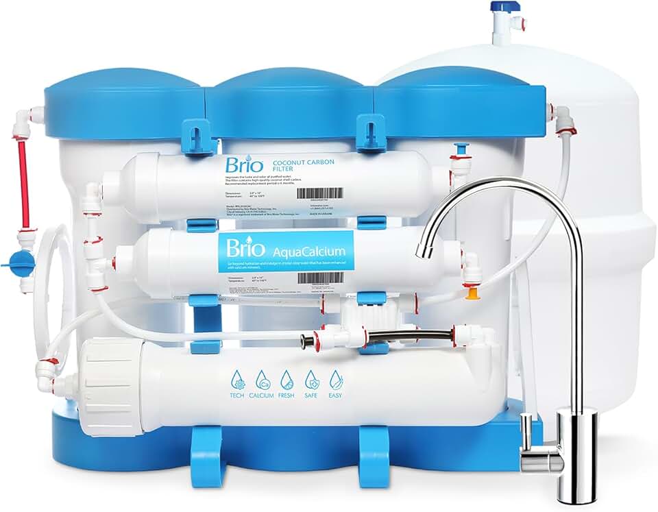 Brio Pure AquaCalcium 6-Stage Reverse Osmosis Undersink Water Filtration System, Remineralization, 75 GPD, WQA Gold Seal Certified for NSF 58, 372, & CSA Standards, Faucet Included