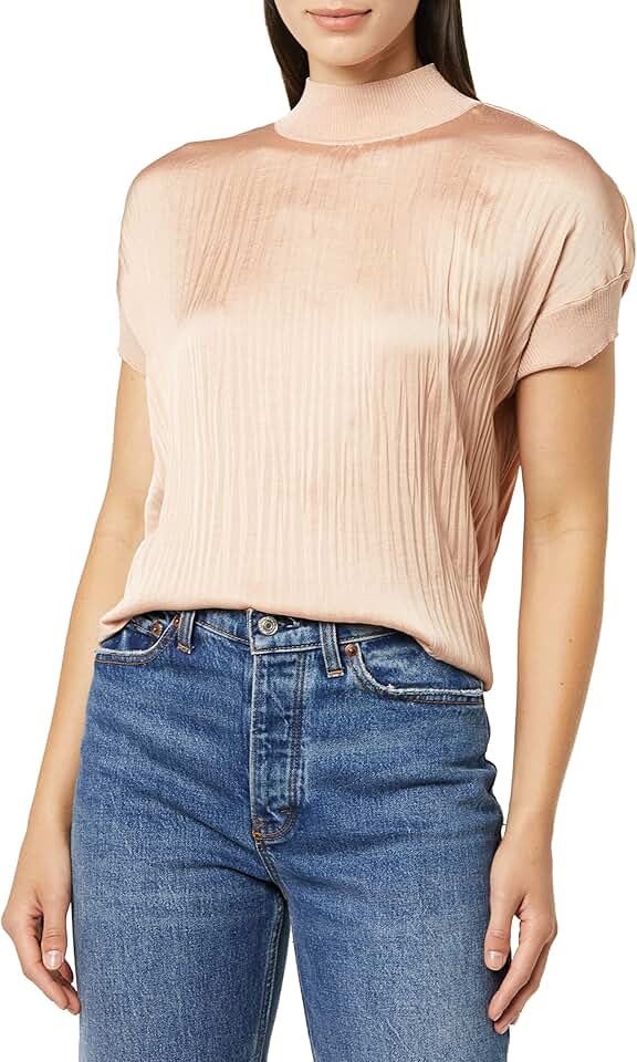 Vince Women's Rib Mock Nk Crushed Satin Popover