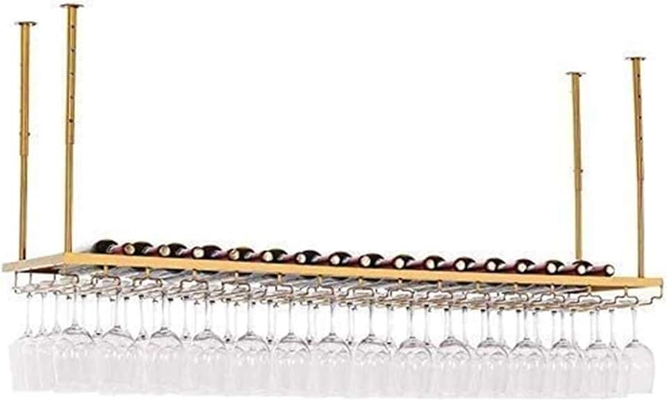 Hanging Wine Rack with Glass Holder and Shelf, Wine Lovers Bar Furniture& Wine Rack Golden Wine Glass Rack Ceiling Upside Down Wine Racks Adjustable Height Wine Bottle (Size : 120x